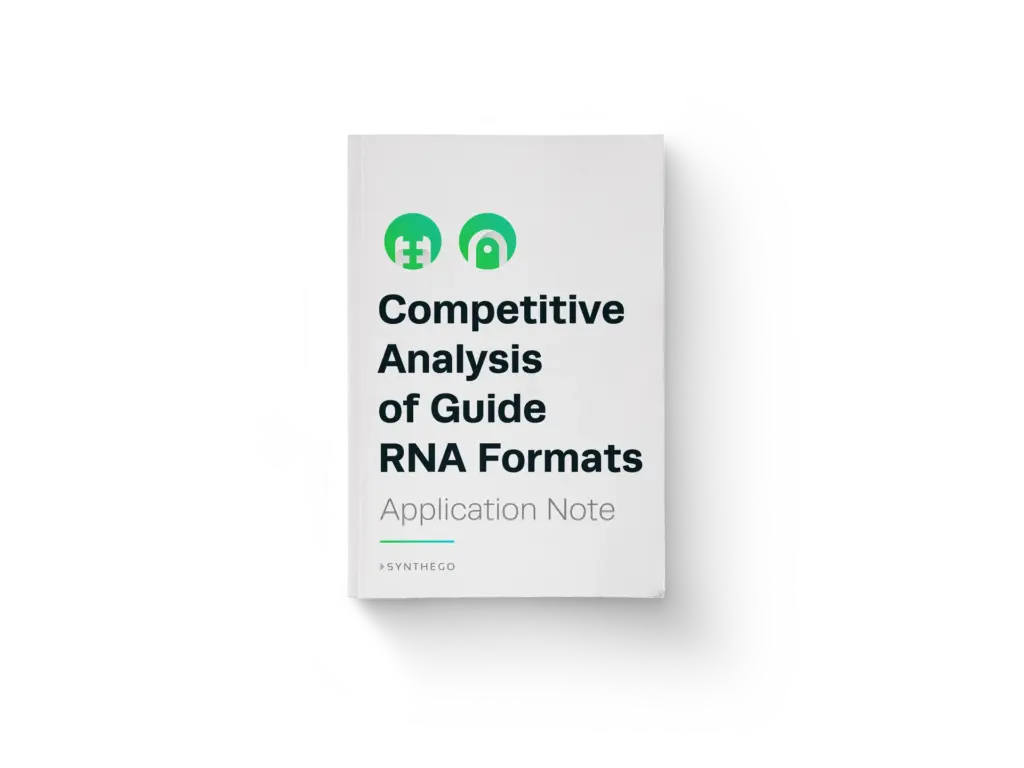 Guide RNAs come in two formats: two-piece cr:tracrRNA and single guide RNA (sgRNA), both with their advantages and disadvantages. At Synthego, we understand how important the right guide RNA format is for a successful CRISPR experiment. In this application note, we compare the editing efficiencies of Synthego’s cr:tracrRNA, cr:tracrRNA from other vendors, and Synthego’s sgRNA. Learn which is the best option for your experiment needs.