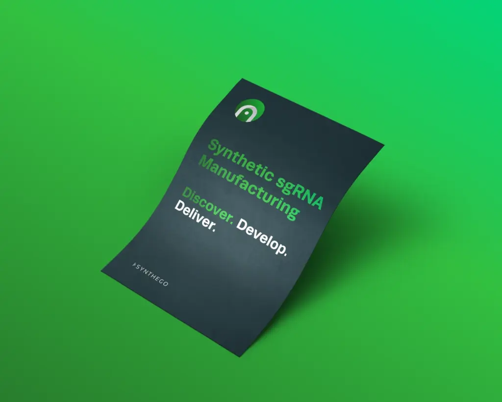 Synthego has applied our expertise in CRISPR genome editing to produce high-quality research-grade gRNAs for basic research, pre-clinical in vitro studies, and early CRISPR-based therapeutic development. In this flyer, learn more about our research grade Synthetic sgRNA and why researchers are making the switch to our sgRNA to achieve the highest editing efficiencies needed to succeed with their research.